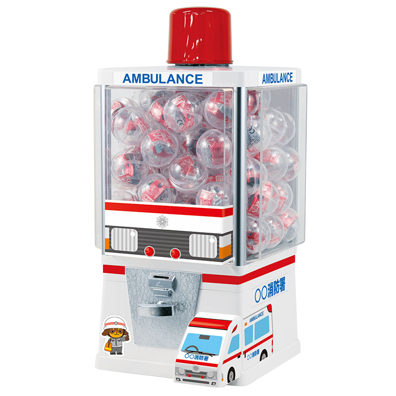 本体デザインもさることながら、取り出し口のミニ救急車デザインが子供心をくすぐります。