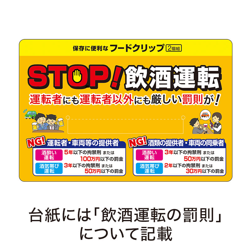 STOP!飲酒運転 マグネット付きフードクリップ(2個組)