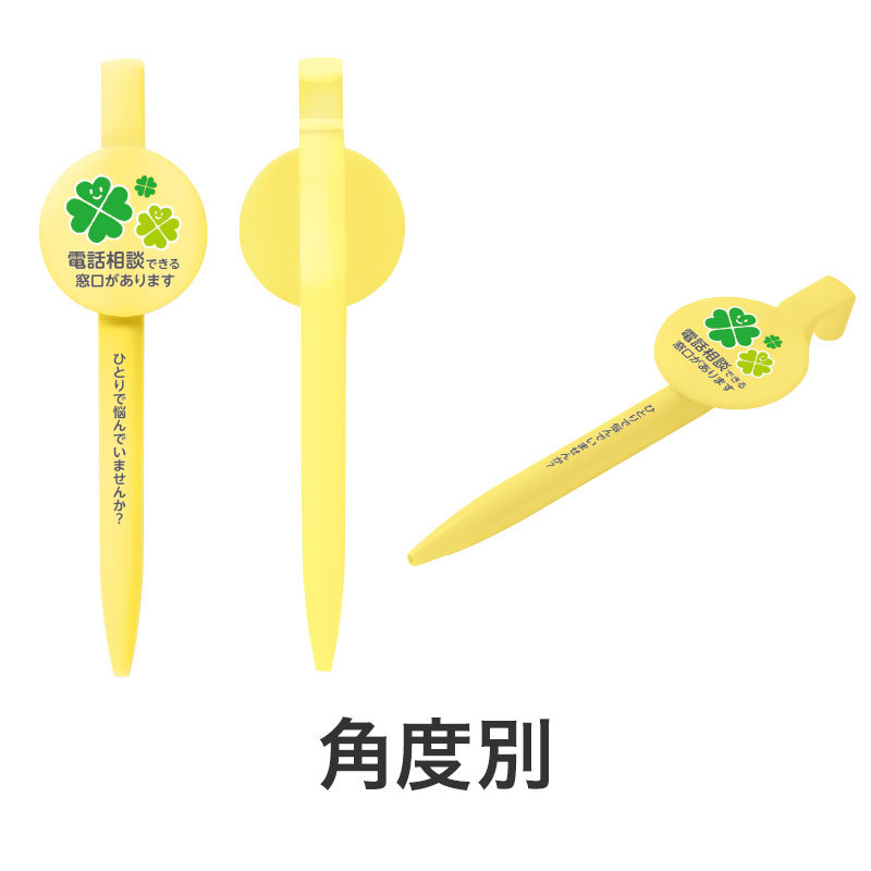 クリップ円形部分には「電話相談できる窓口があります」柄の部分には「ひとりで悩んでいませんか?」…と、プリントしています。