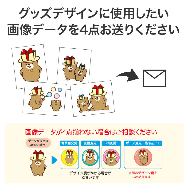 ガチャ専用のオリジナル景品を、4種類のデザインで制作いたします。