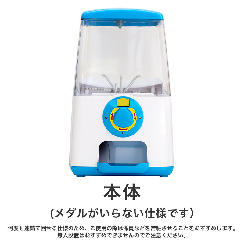 | その他詳細 | 内容: マシン・POP・六角レンチ・取扱説明書 各1 鍵×4(商品用・金庫用 各2) 空カプセル×400 ハンドタオル×400(4種×100) 対応カプセルサイズ:4.8~7.5cm |