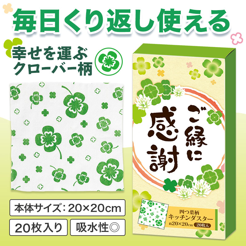 「ご縁に感謝」の言葉と鮮やかな四つ葉をあしらったパッケージで、そのまま販促イベントや展示会、セミナーでもお渡しいただけます。