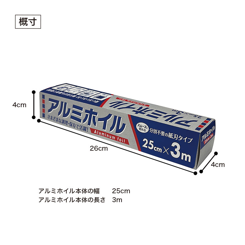 日常使いに便利なアルミホイル(25cm×3m)です。