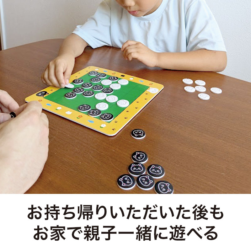 コマは【くろねこ】と【しろねこ】のかわいいデザインで、子どもが喜ぶこと間違いなし。