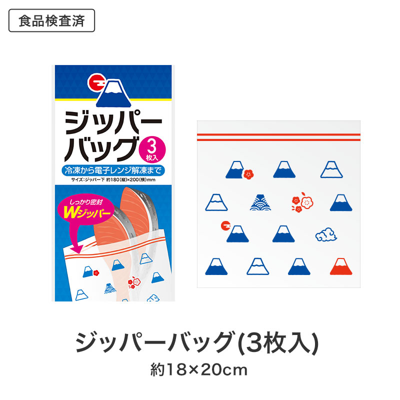 富士山デザインのジッパーバッグはWジッパー仕様で汁モレも安心。