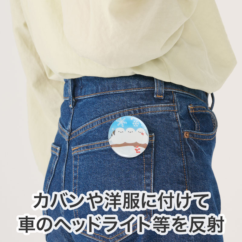 反射仕様で交通安全に役立つ、便利な缶バッジです。