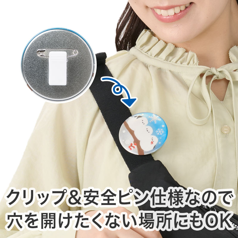クリップと安全ピンの2way仕様なので、カバンや衣類等取り付ける場所に合わせて使い分けができます。