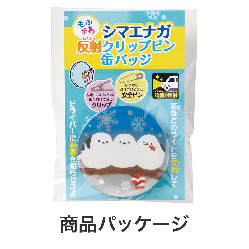 もふかわシマエナガ 反射クリップピン缶バッジ