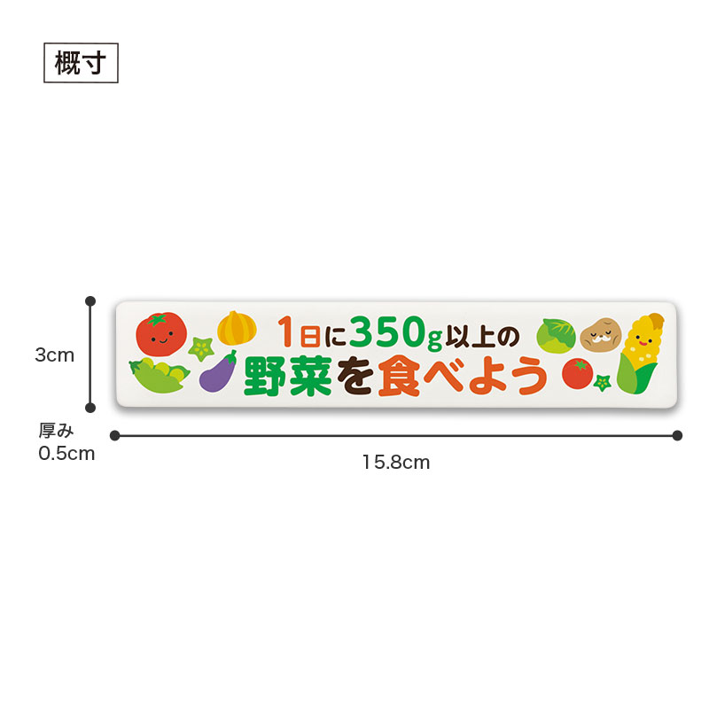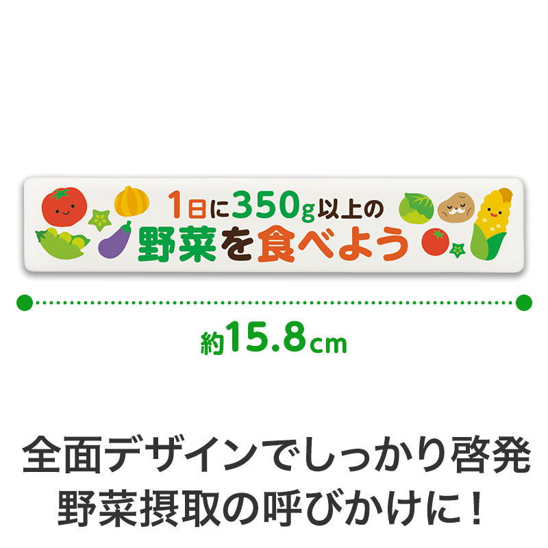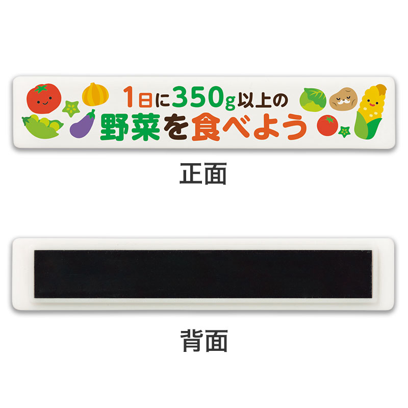 日常的に使えるマグネットバーに「野菜を食べよう!」と大きく印刷されているので、毎日の暮らしの中で自然と健康に目を向けられるアイテムです。