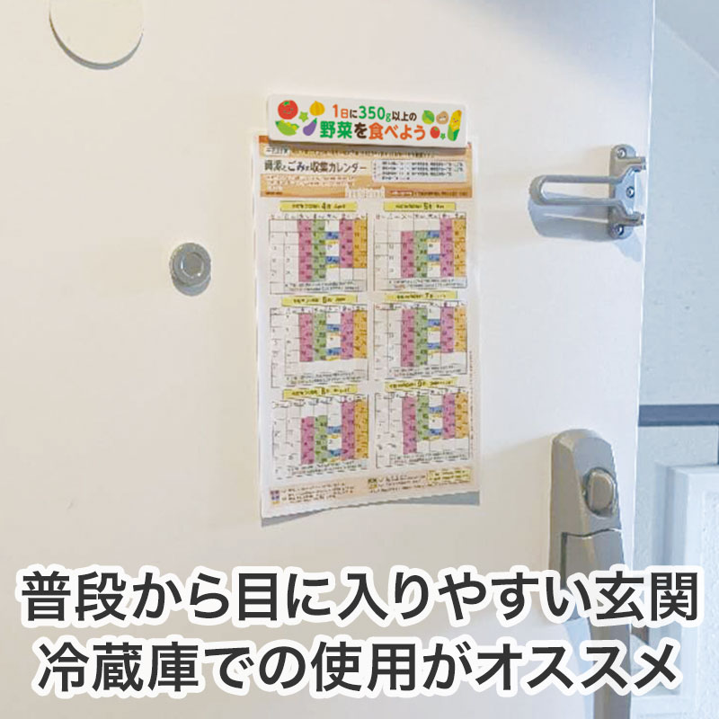 冷蔵庫に貼っておくことで、毎日の食事のたびに野菜を意識するきっかけになります。
