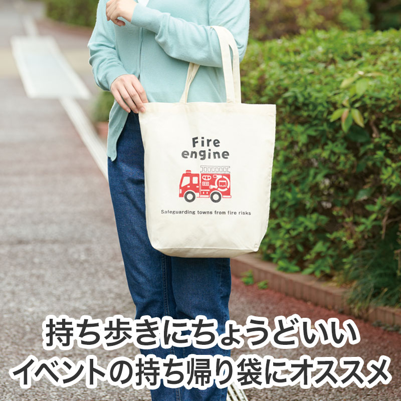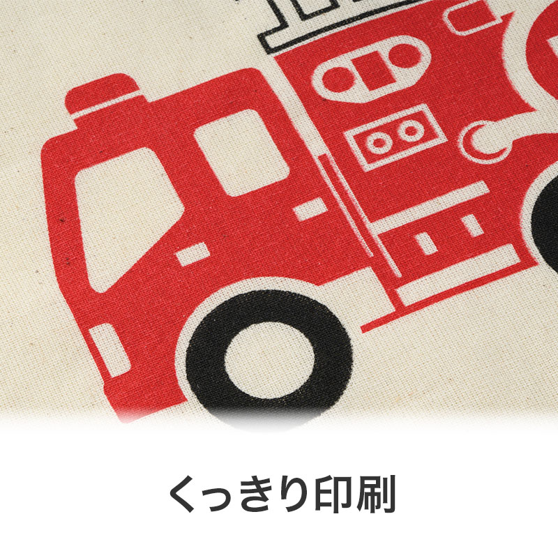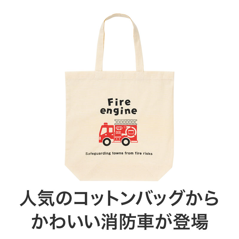 消防車のデザインがかわいい、人気のマチありコットンバッグです。