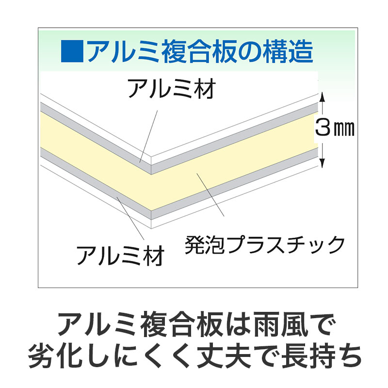 アルミ複合板(厚さ3mm)を使用しており、とても丈夫です。