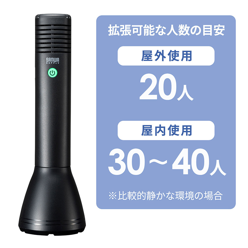 ※屋外使用なら約20人への案内、屋内使用なら約30~40人への案内(比較的静かな環境での人数)