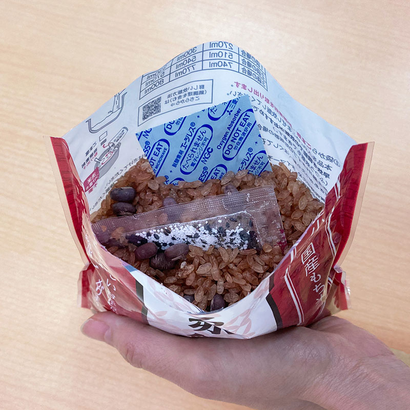 炊飯器で簡単に炊ける、袋入りのお手軽なお赤飯。