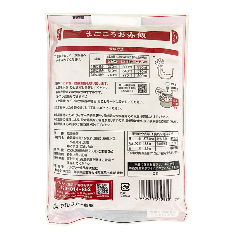 厳選した北海道産小豆と100%国産のもち米を使用した「まごころお赤飯」。