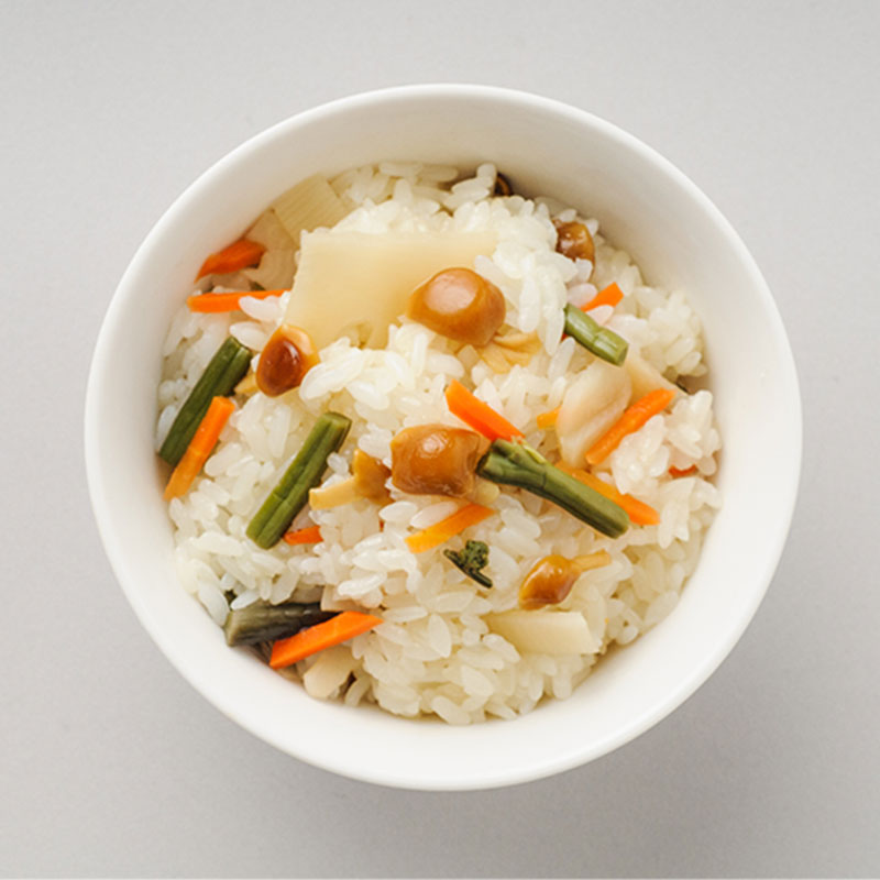 具材には、国産のわらびとなめこ、たけのこ、にんじんを合わせ、見た目にも彩り良く仕上げました。