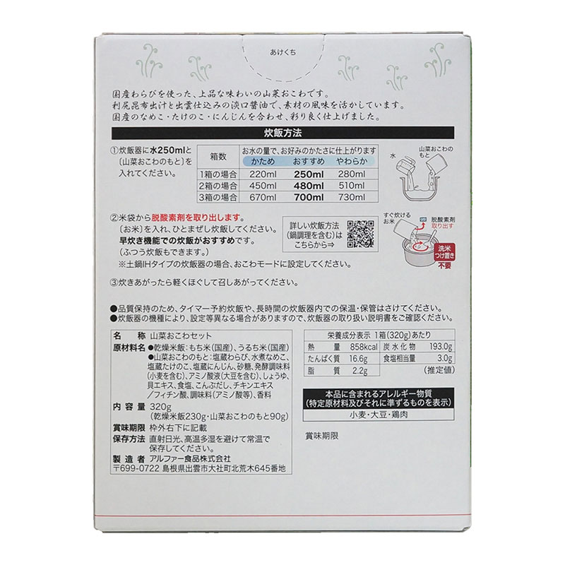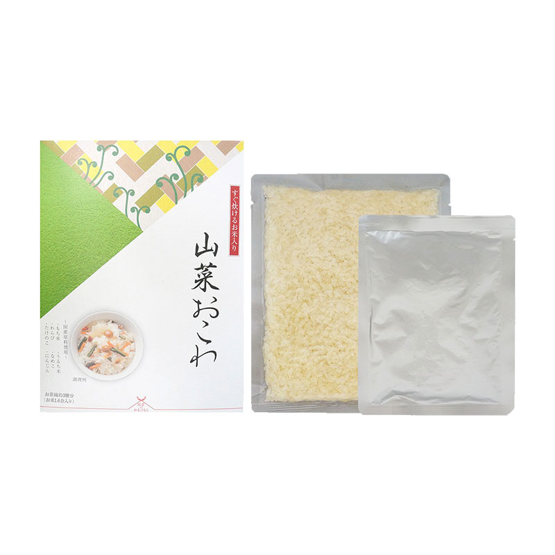 「すぐ炊けるお米」入りの「すぐに炊ける山菜おこわ」です。