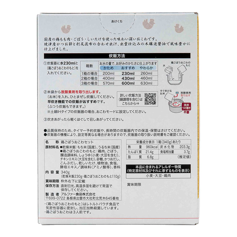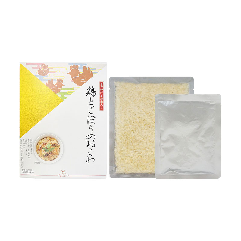 「すぐ炊けるお米」入りの「すぐに炊ける鶏とごぼうのおこわ」です。